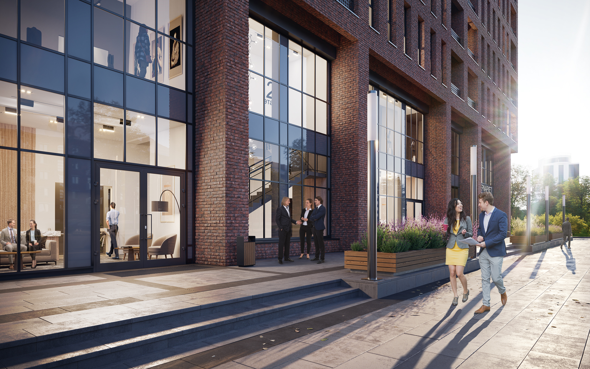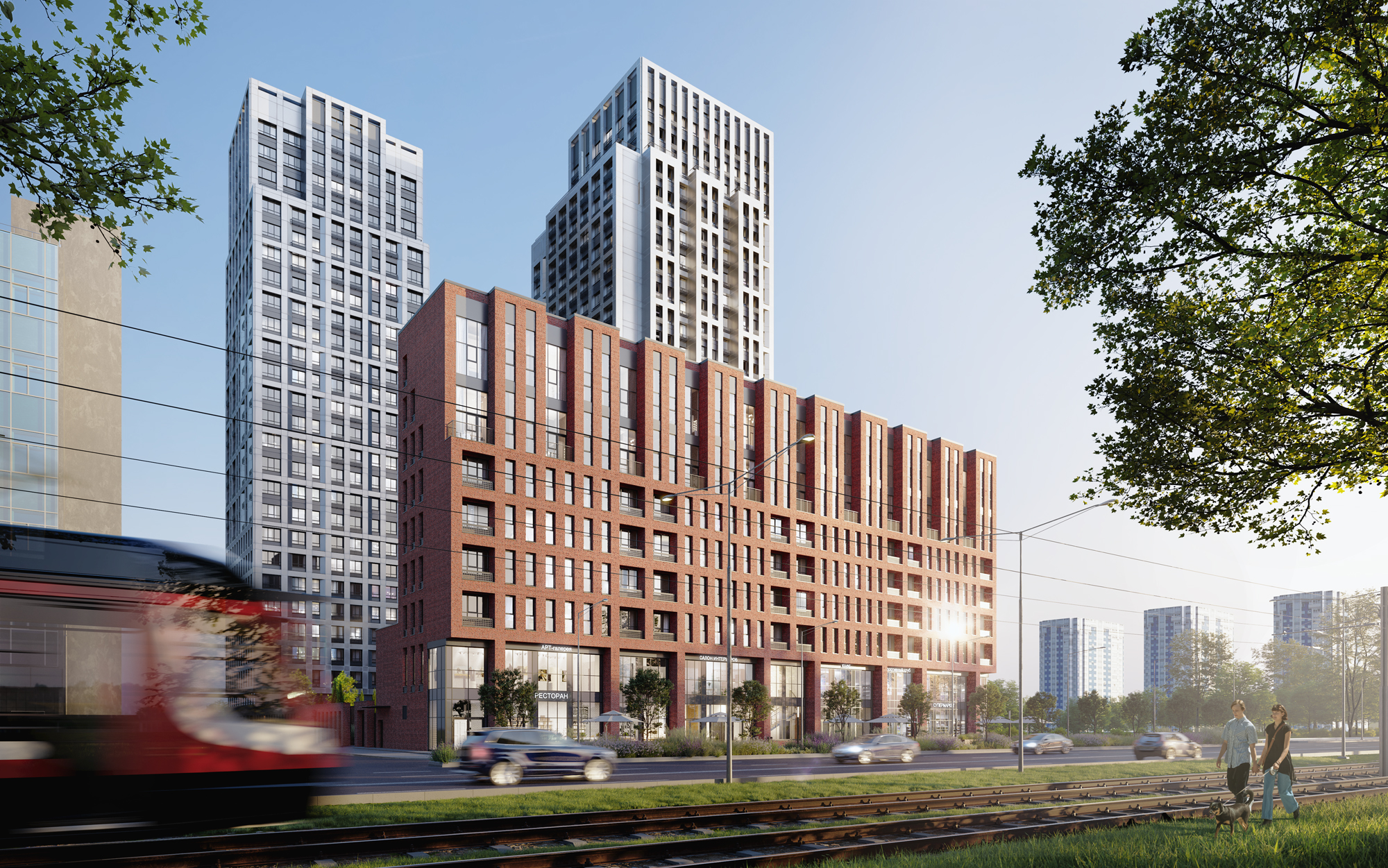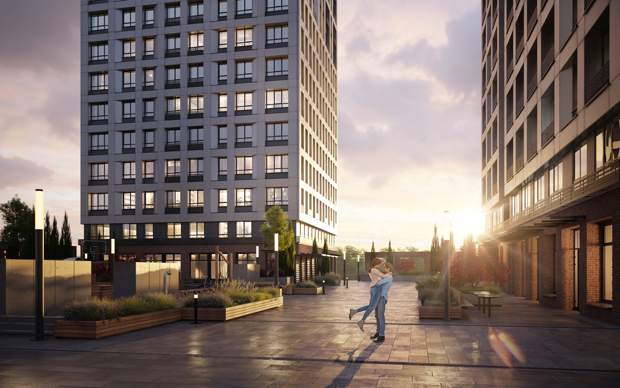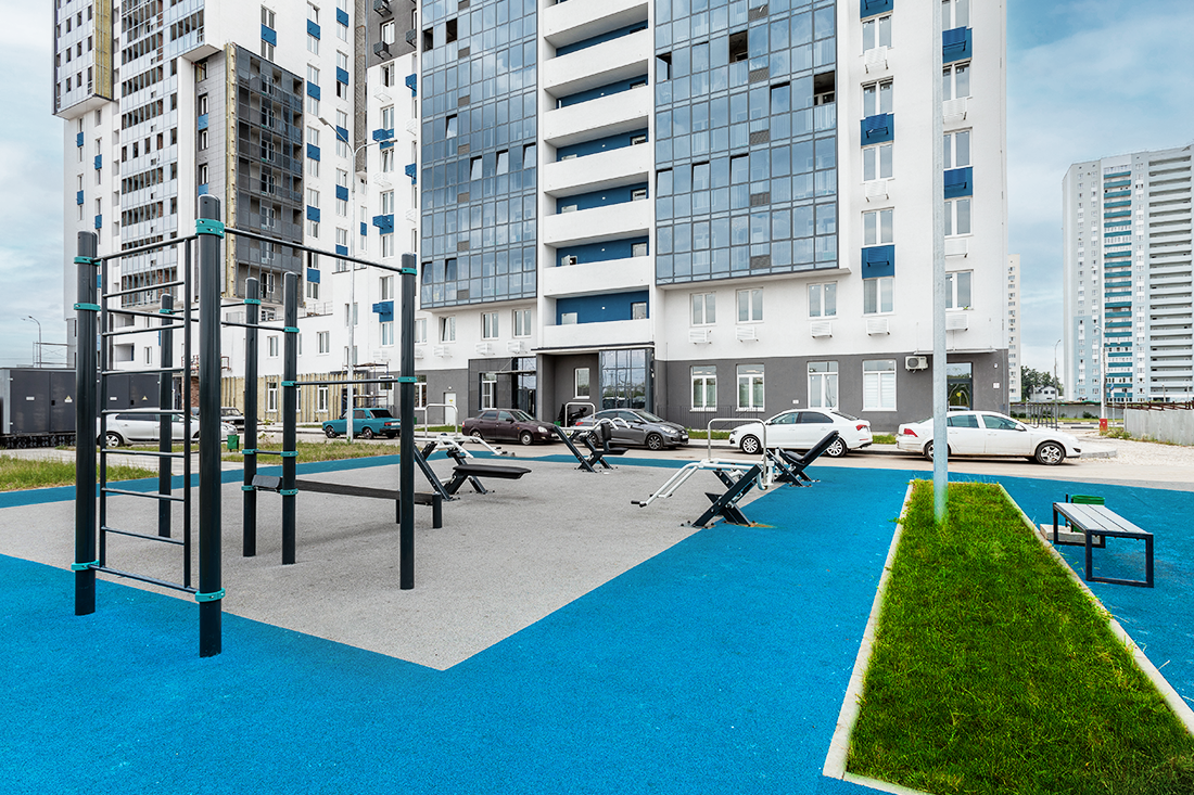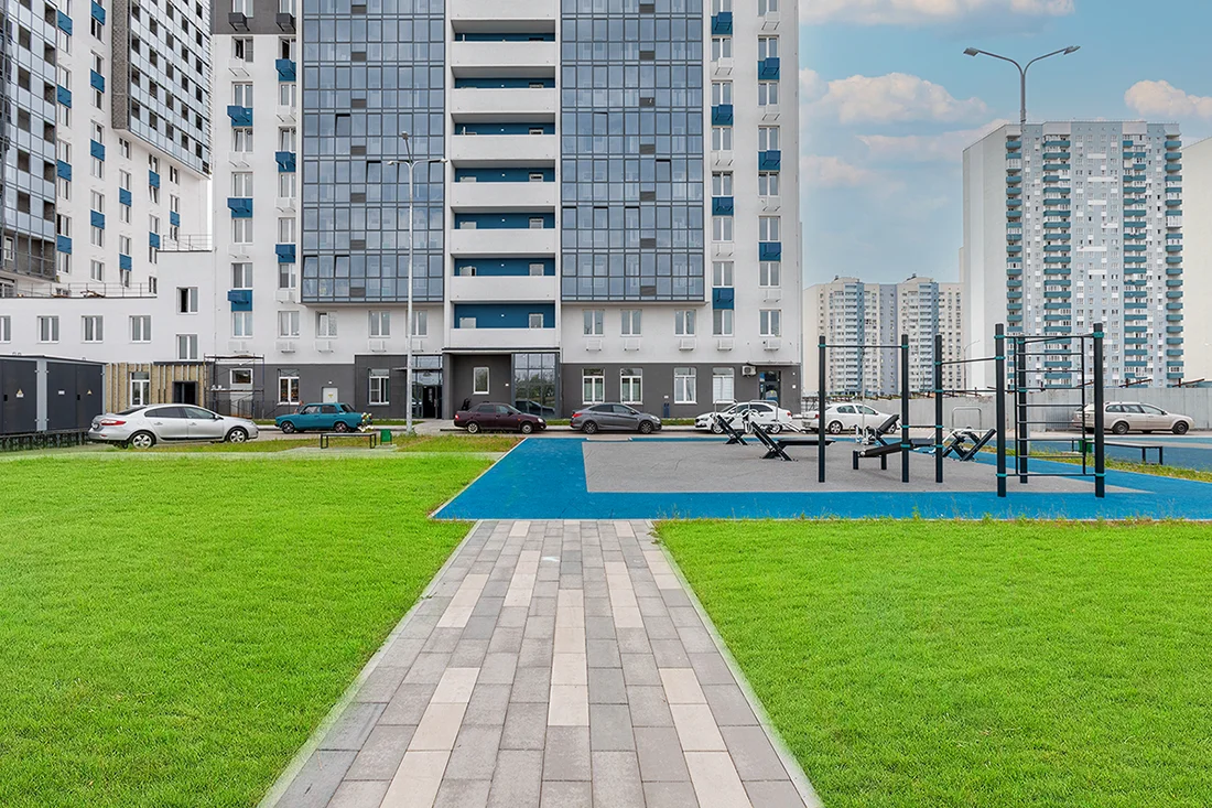 Дом расположен внутри квартала, что обеспечивает безопасность и тихую атмосферу, отсутствие пыли, гари и шума с дороги. Благоустройство территории включает устройство внутридворовых проездов, проходов и тротуаров, разбивку газонов, высадку деревьев и кустарников. Для взрослых и детей разного возраста будут оборудованы игровая и спортивная площадки, а так же места для отдыха.