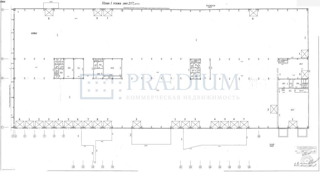 Общая площадь здания – 13 000м2, прямоугольное помещение шириной: 72м., длиной: 180м.